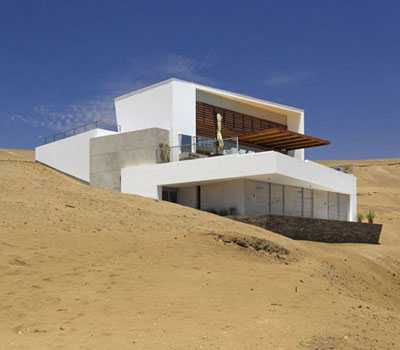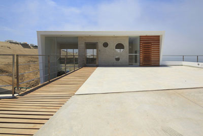El proyecto se desarrolla sobre un terreno difícil, de forma irregular y con una pendiente pronunciada en arena pero con una vista privilegiada hacia el mar en el lote E-3 de la playa Palillos al sur de Lima.